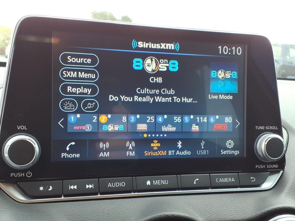 - Radio: AM/FM w/RDS/MP3/Aux-In -inc: 6 speakers, 8" color display w/multi-touch control, streaming audio via Bluetooth®, Bluetooth® hands-free phone system, hands-free text messaging assistant, Siri eyes-free, Google Assistant voice recognition w/Apple CarPlay and Android Auto, NissanConnect, (1) front USB connection port (type A) for iPod interface and other compatible devices, (1) additional front USB (type C) and (1) charge-only USB (type A) center console and SiriusXM radio