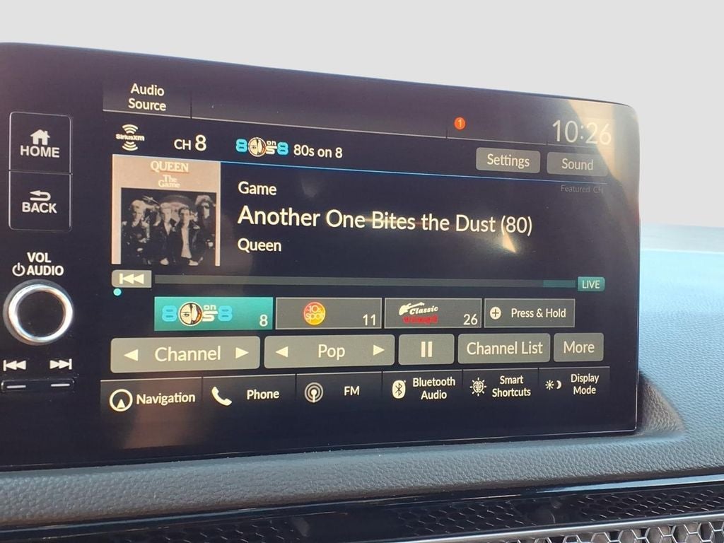 - Radio: Bose Premium Audio System -inc: 12 speakers w/subwoofer, 9" color touch-screen w/volume knob, customizable feature settings and smart shortcuts, Honda Satellite-Linked Navigation System w/voice recognition and Honda Realtime Traffic (The Honda Satellite-Linked Navigation System functions in the United States (not including territories, except Puerto Rico) and Canada, Honda Realtime Traffic requires applicable FM or cellular signal/reception, Please see your Honda dealer for details.), Bluetooth® HandsFreeLink, Bluetooth® streaming audio, Radio Data System (RDS), speed-Sensitive Volume Compensation (SVC), 2.5-amp USB smartphone/audio interface port in front console, HondaLink, wireless Apple CarPlay integration, wireless Android Auto integration, SMS text message function, SiriusXM (SiriusXM requires a subscription after any trial period, If you decide to continue your SiriusXM service at the end of your trial subscription, the plan you choose will automatically renew and bill at then-current rates until you call SiriusXM at 1-866-635-2349 to cancel, See our customer agreement for complete terms at www.siriusxm.com, Fees and programming subject to change, Available in the 48 contiguous United States and D.C, SiriusXM and all related marks and logos are trademarks of SiriusXM radio Inc.), HD Radio, 2.5-amp USB charging port in front console and wireless phone charger